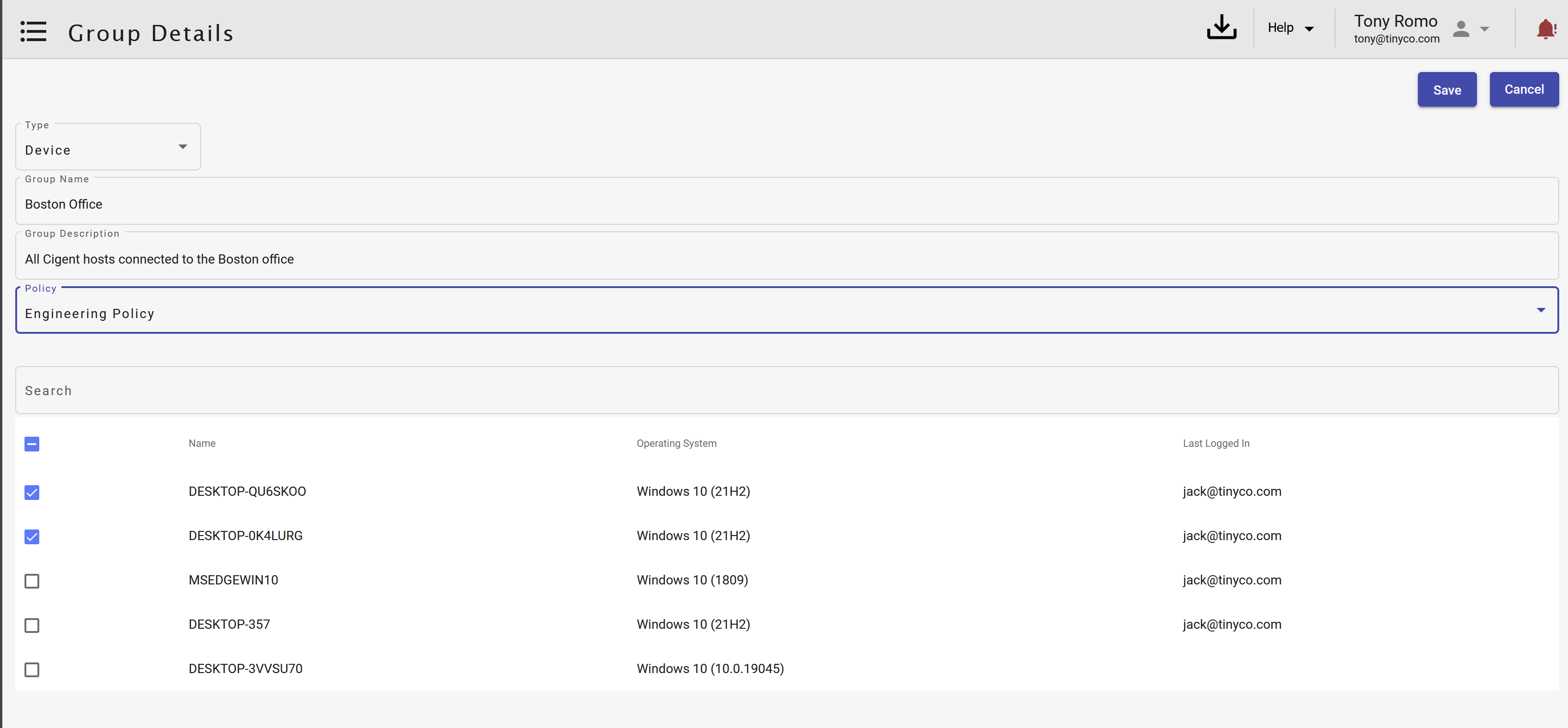 If an endpoint is not a member of a specific group, it will automatically be assigned to the Default policy. Devices can only be a member of one group.