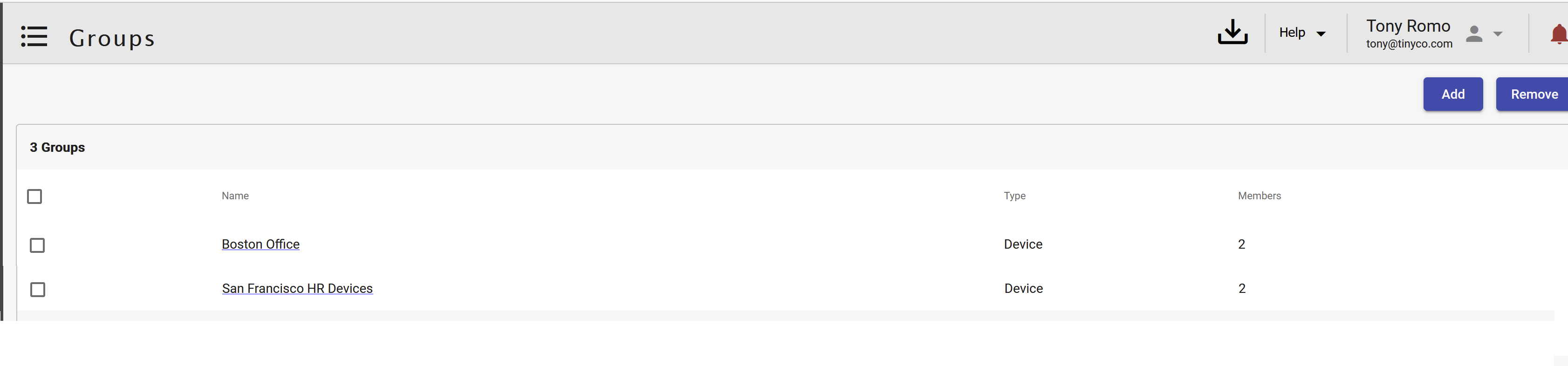 Remove a group. Removing a device group with currently assigned endpoints will automatically re-assign those endpoints to the default group.