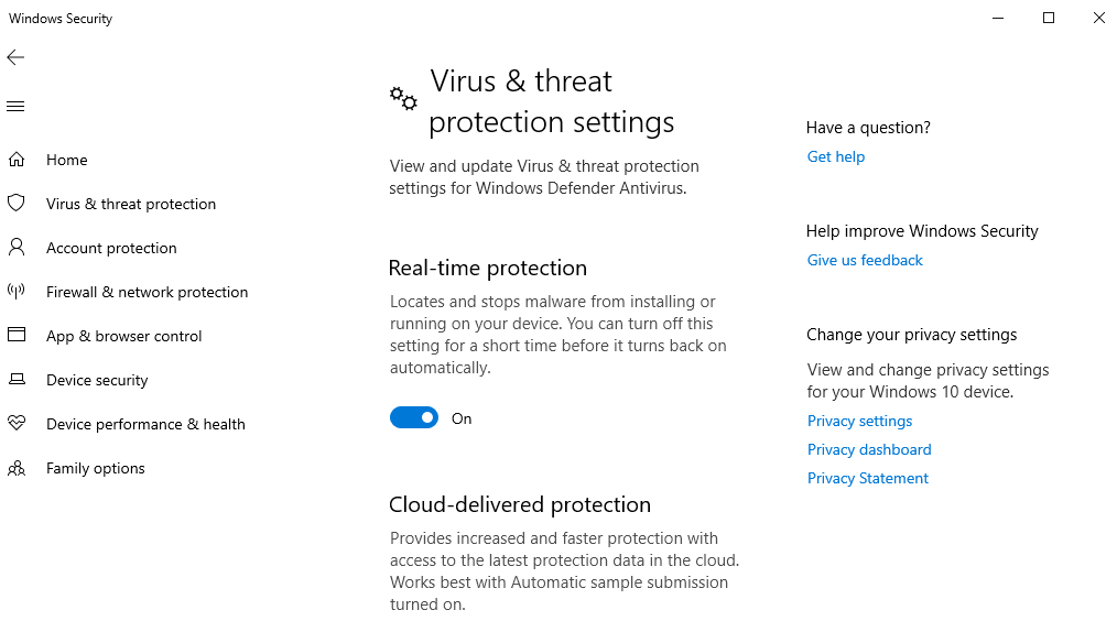- Microsoft Defender or Antivirus is shutdown or disabled