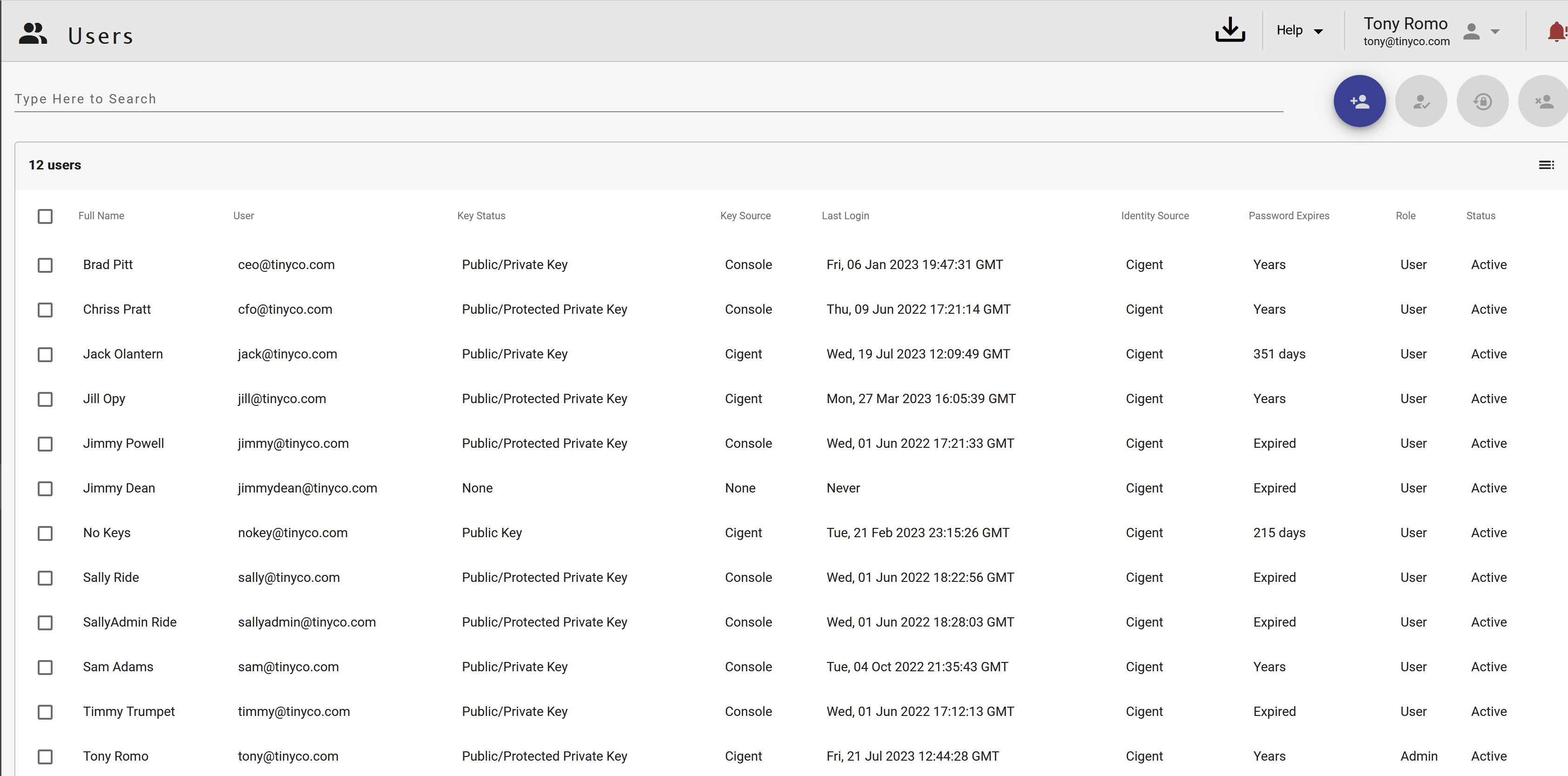 Administrators have access to all features and capabilities within the console including integration management, user creation and policy management. User role only has access to decrypt file page and profile settings for themselves.